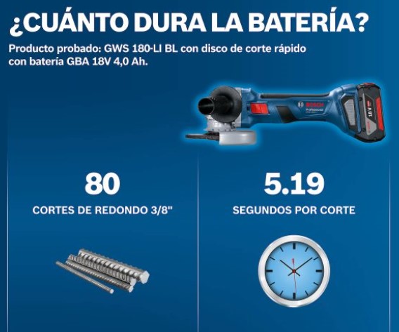 El Esmeril angular inalámbrico GWS 180-LI de Bosch, 18V y motor Brushless, es el más pequeño y liviano del mercado. Tiene una potencia equivalente a una herramienta con cable de 700W y tiene protección contra el polvo, ya que viene con un filtro desmontable para una mayor vida útil del motor. Por ser ergonómico, ofrece un manejo más cómodo y seguro. Su diseño compacto está balanceado y optimizado para cortes versátiles, además viene con una brida de metal que garantiza una mayor durabilidad de la herramienta. El Esmeril inalámbrico Bosch GWS 180-LI viene con un motor Brushless, sin escobillas de carbón, que ofrece el doble de vida útil sin necesidad de mantenimiento. Indicado para corte y desbaste de metales e ideal para construcción general, sistemas de calefacción y aire acondicionado, electricistas, carpinteros y plomeros. El Esmeril GWS 180-LI incluye 1 empuñadura auxiliar, 1 brida, 1 tuerca, 1 llave de tuercas, 1 cubierta de protección y 1 manual de instrucciones; no incluye batería. Es una herramienta 100% compatible con todas las baterías y cargadores Bosch de 18V